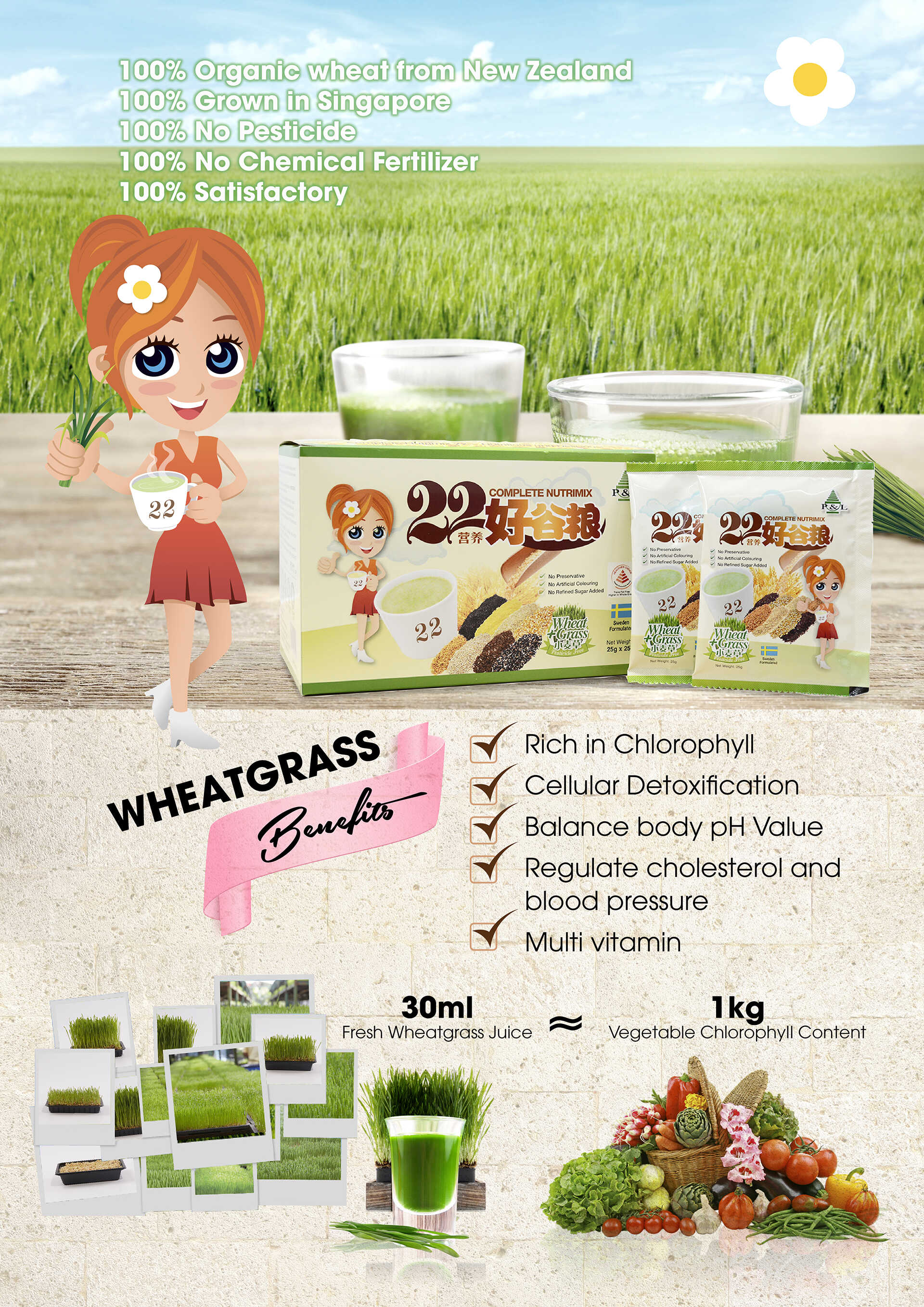 + Wheat Grass là một loại thực phẩm xanh tuyệt vời, cung cấp chất diệp lục (chlorophyll), chất chống ôxi hoá giúp tăng cường sức đề kháng, giải độc cơ thể.